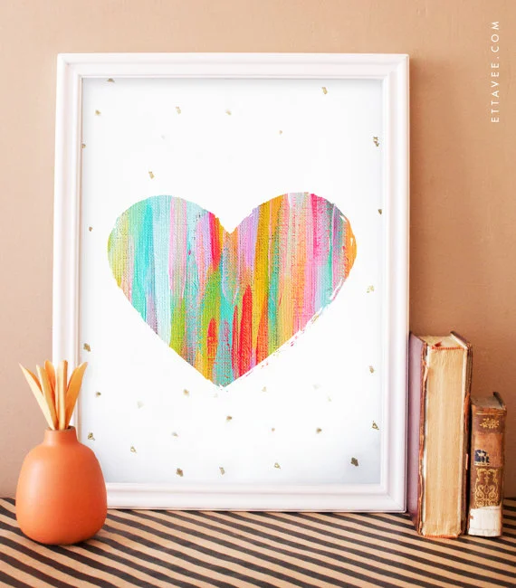 Yay for new prints!! New prints always give the shop a fresh feel - I love it! First new item is a colorfully painted heart print with gold leaf flecks. I spent most of the weekend painting and love all of the different patterns created, I couldn't wait to turn them into prints. It's the first of many spring inspired prints!!