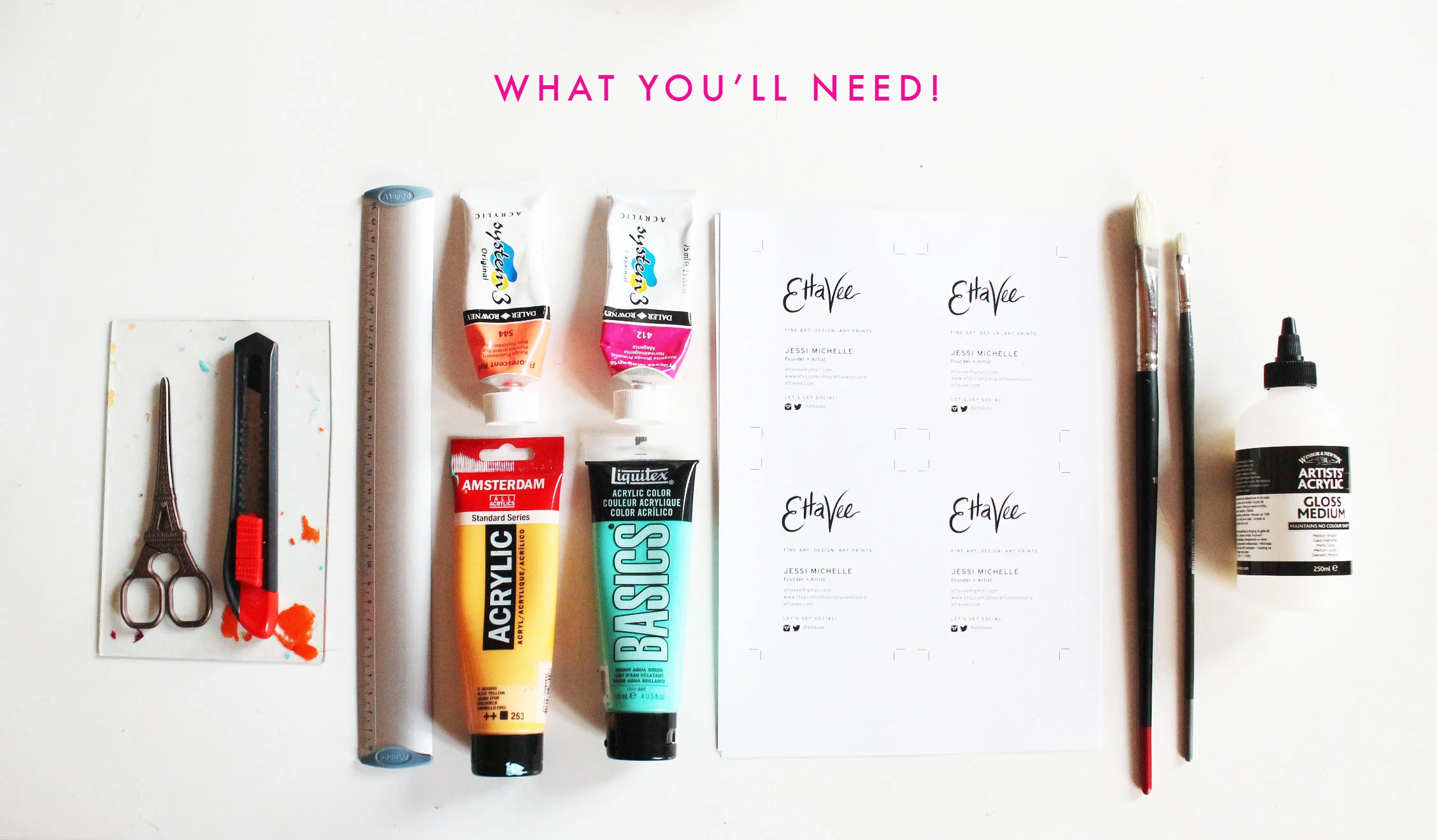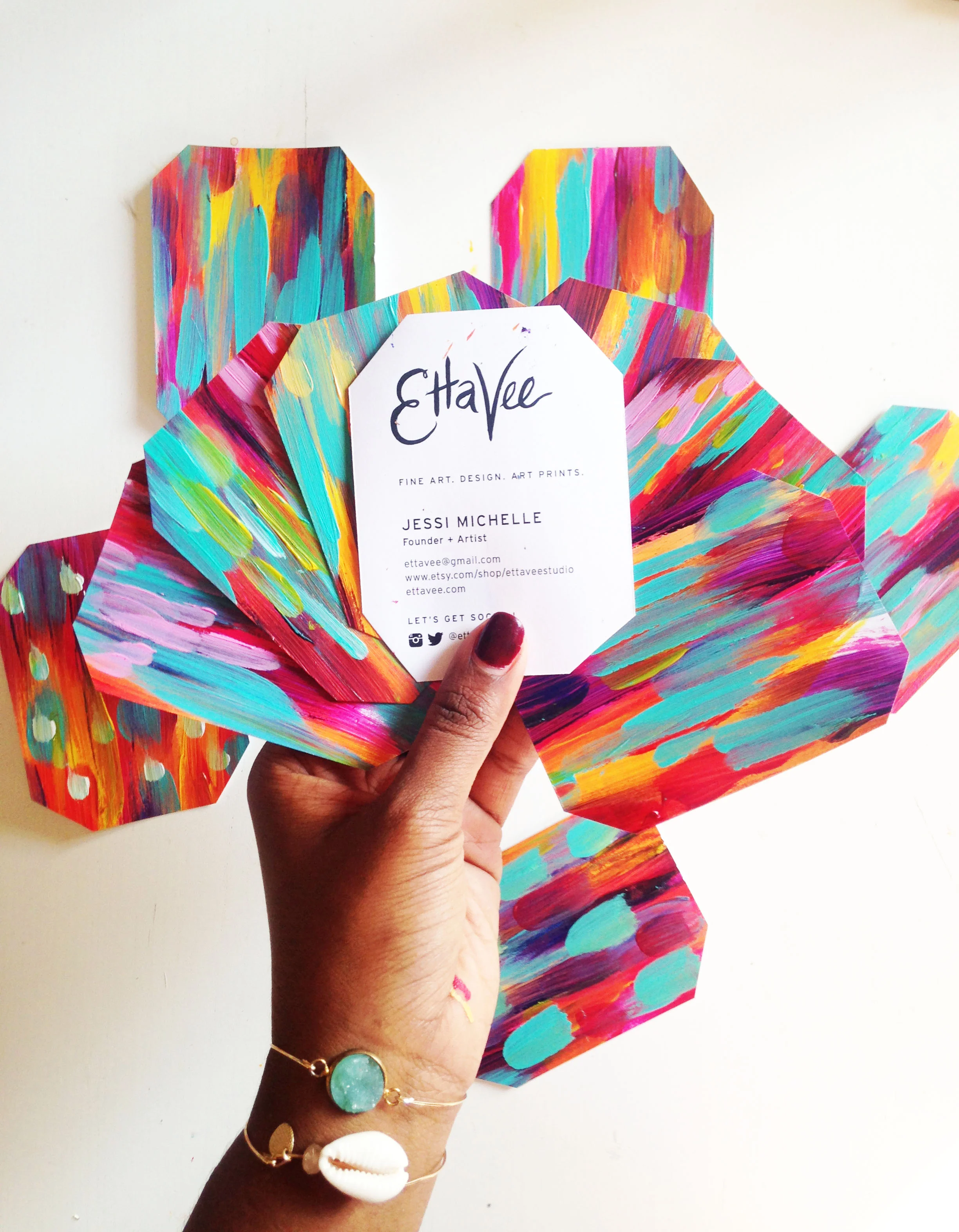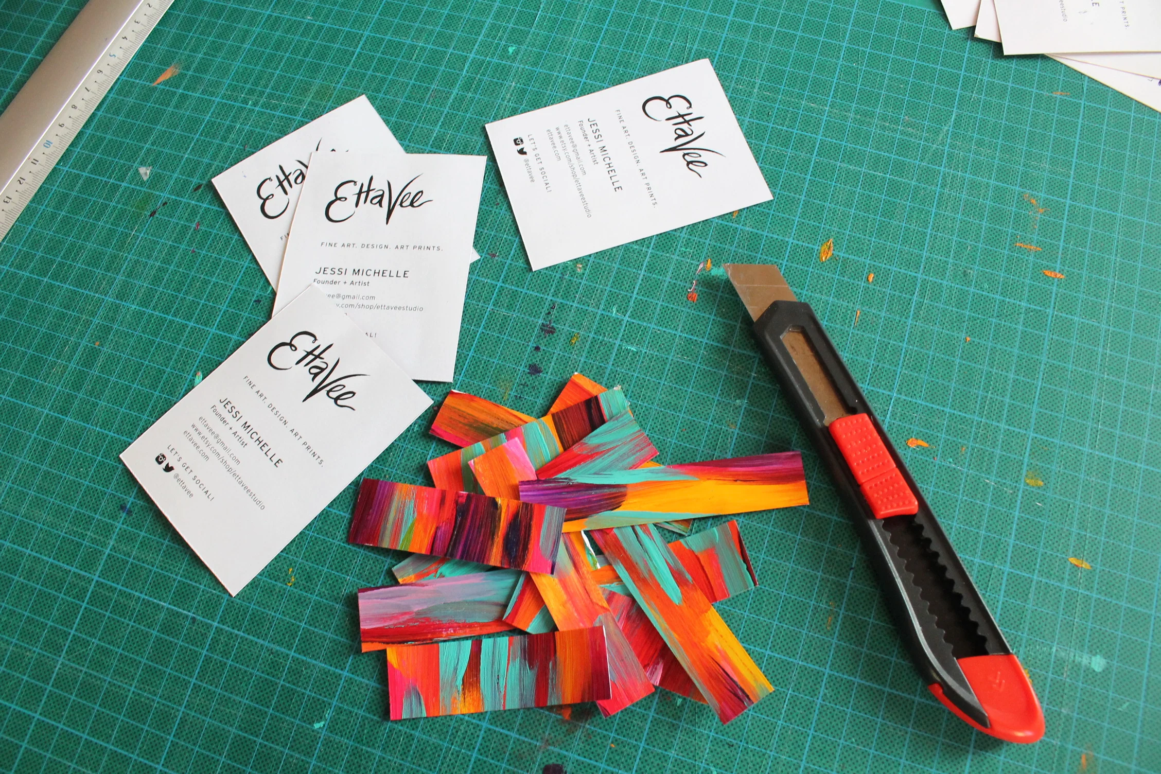 Calling all color-lovers, I have the card for you!! I was looking at ways to re-vamp my business cards and I wanted to create something that portrayed my brand, which is bright and colorful, while also showing my handcrafted aesthetic. So I decided, why not create some eye-catching hand painted business cards to represent my fine art and art print business! The cards have been so well received I figured i'd share the "how-to" with all of you!