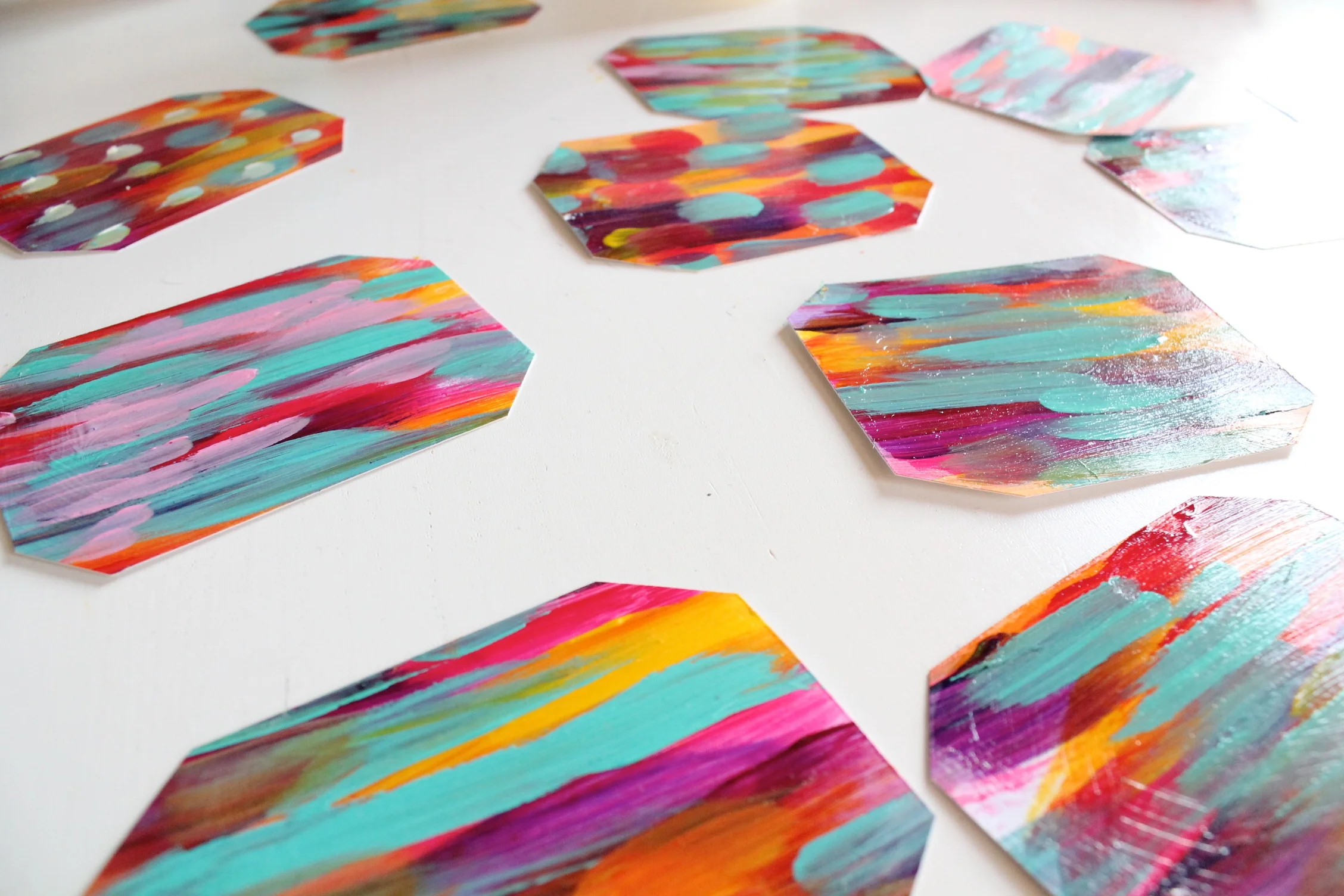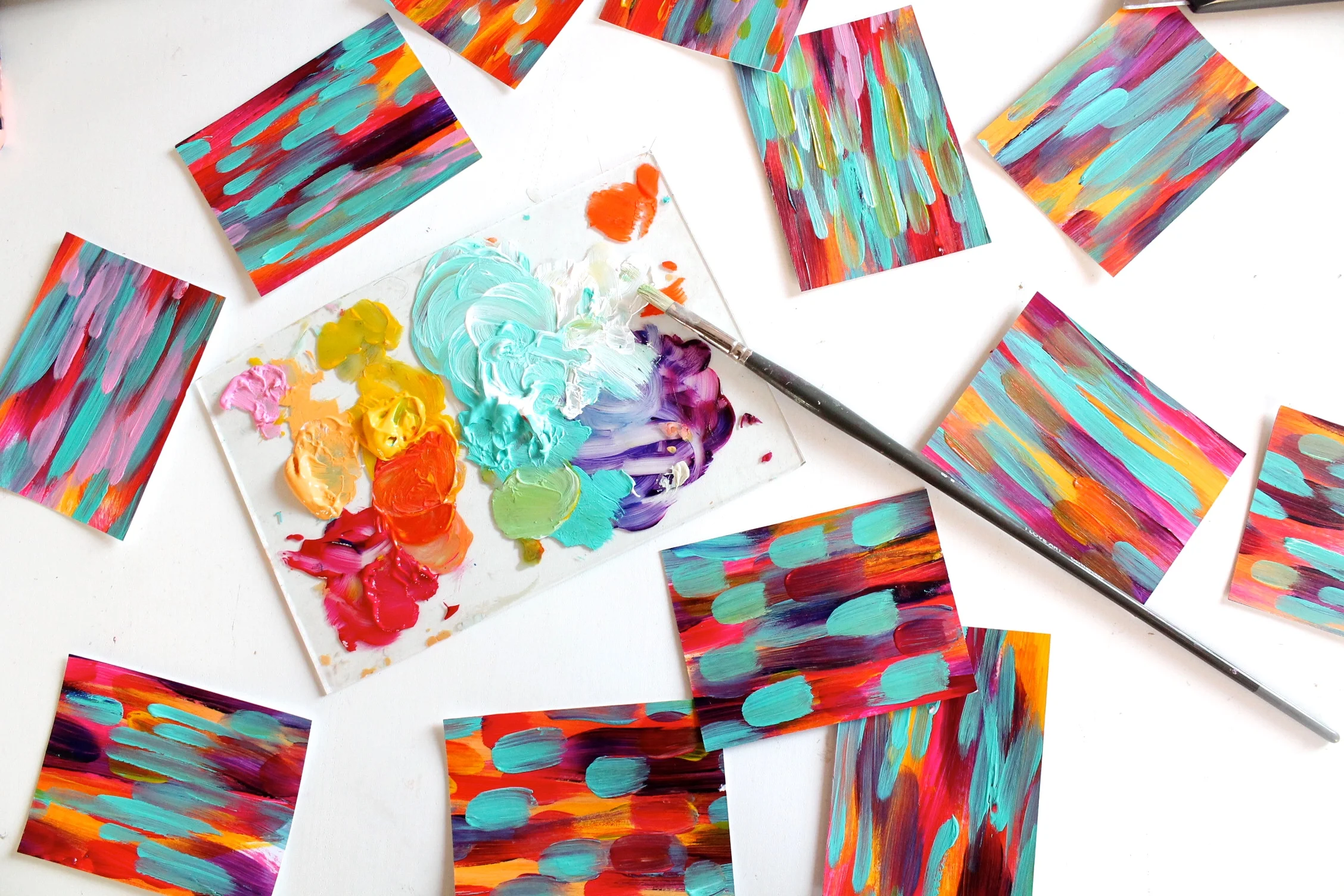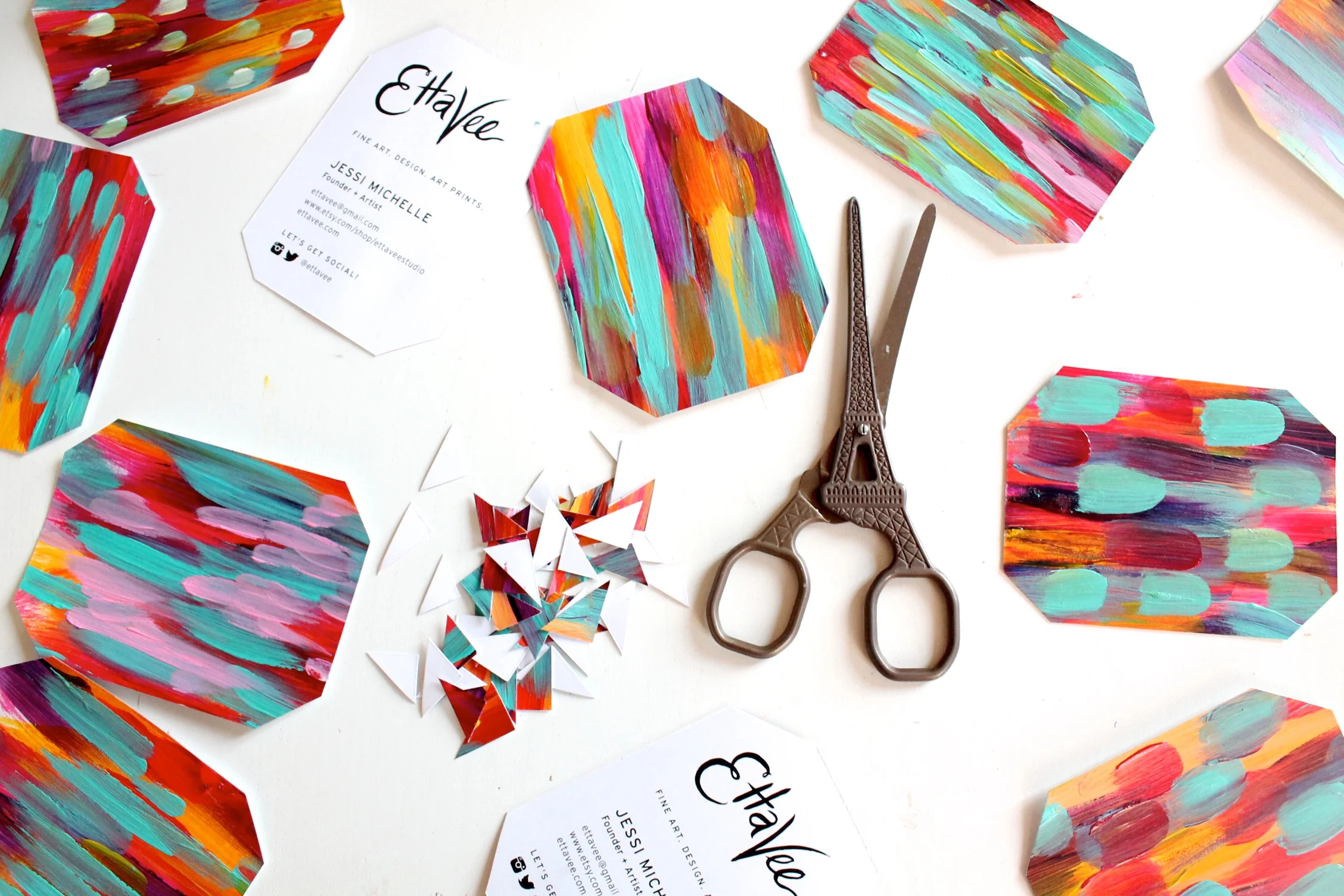 Calling all color-lovers, I have the card for you!! I was looking at ways to re-vamp my business cards and I wanted to create something that portrayed my brand, which is bright and colorful, while also showing my handcrafted aesthetic. So I decided, why not create some eye-catching hand painted business cards to represent my fine art and art print business! The cards have been so well received I figured i'd share the "how-to" with all of you!
