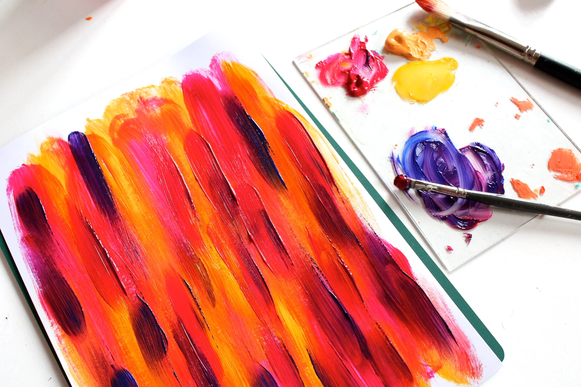 Pick up a second paint color and paint strokes in the empty white spaces. Take some time to blend the two color together.