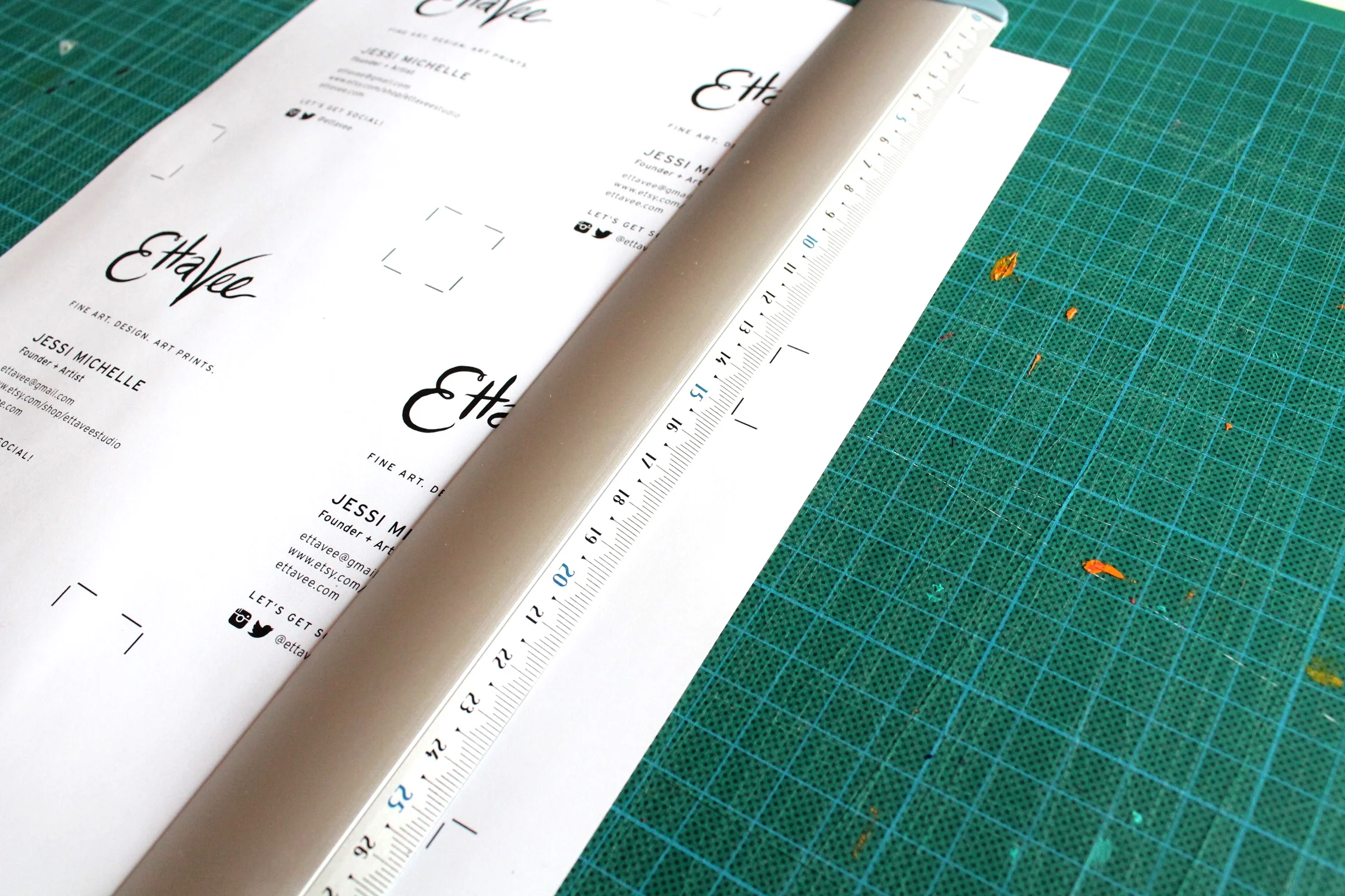printed out business cards w/ crop marks - I use A4 (similar to US letter size) 250g paper
