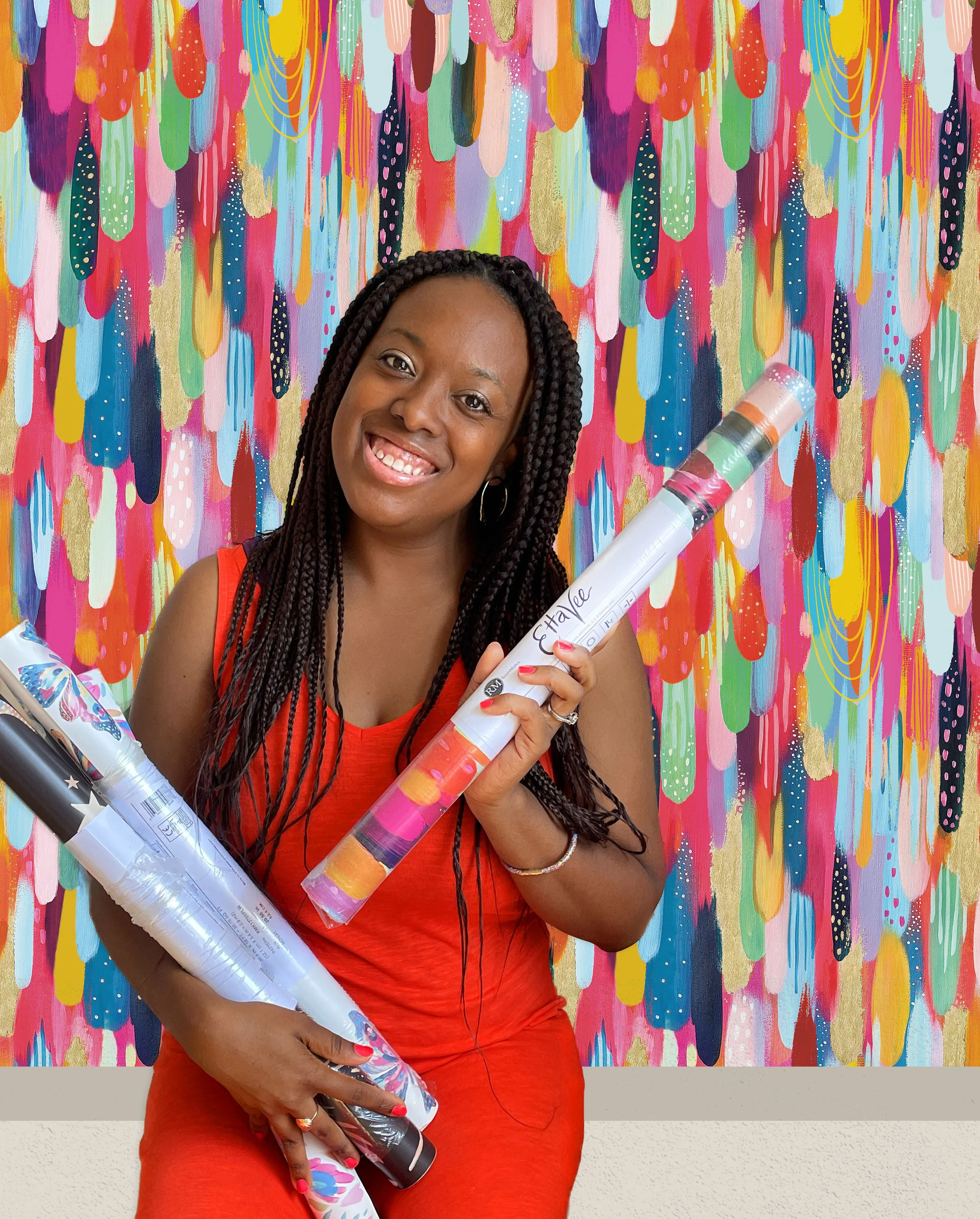 OH-EM-GEEEE, it’s finally here! Welcome to my NEW collection of peel & stick wallpaper with Roommates Décor! This collection features four expressive designs in three colorways each! Being able to offer three colorways is a game changer for me as I’m able to offer a little bit of something for different tastes. This collection has classic EttaVee brights, cool tones AND neutrals. I can see this collection living in many different spaces and on an array of surfaces.
