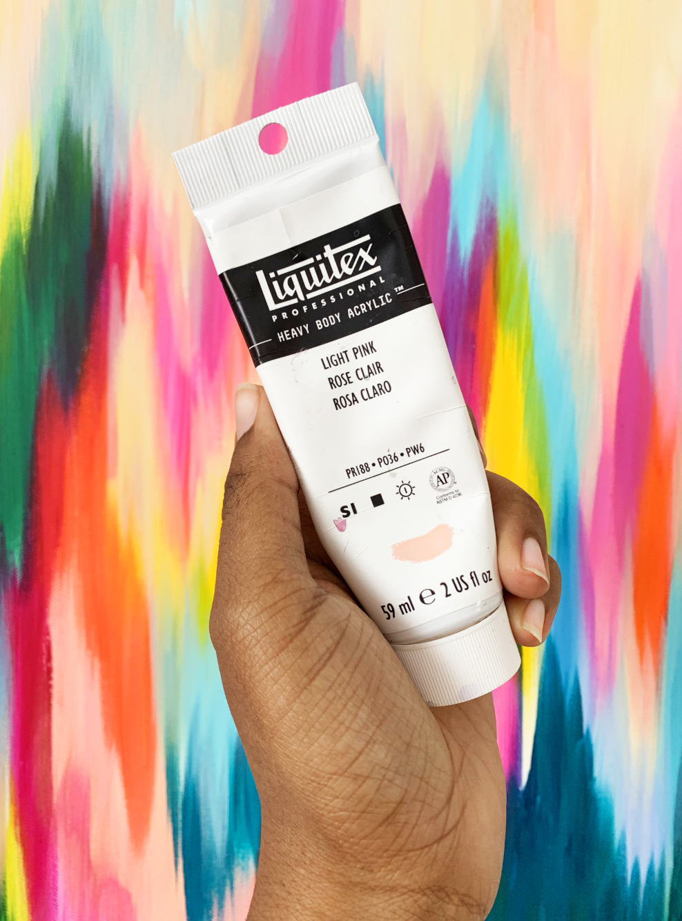 Many new artists start their acrylic painting journey with the small tubes of craft acrylic paint that can be found at most art stores. This is great if you’re just getting started, but depending on the quality of the craft paint, you might find that your paintings feel a bit chalky and streaky. To fix this, I recommend using heavy-body acrylic paint. My favorite brand is Liquitex. Heavy-body paint is much thicker and easier to work with in my experience. I recommend experimenting with this if you haven’t had a chance to!