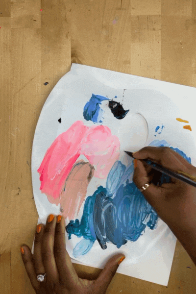 If you don’t have paint palettes like this, you can use scrap paper. Get creative with it. Look through old magazines and see if you can find a cool pattern or photo you like! Even envelopes or junk mail can be a fun place to try and find colorful designs. Be open to playing with it and you never know what you might discover!