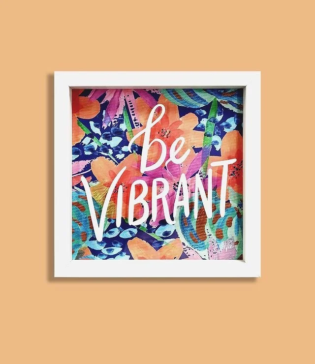 “Be Vibrant” features another stunning floating glass effect with a colorful floral background. Snag this piece as a reminder of how vibrant, joyful, and colorful you are!