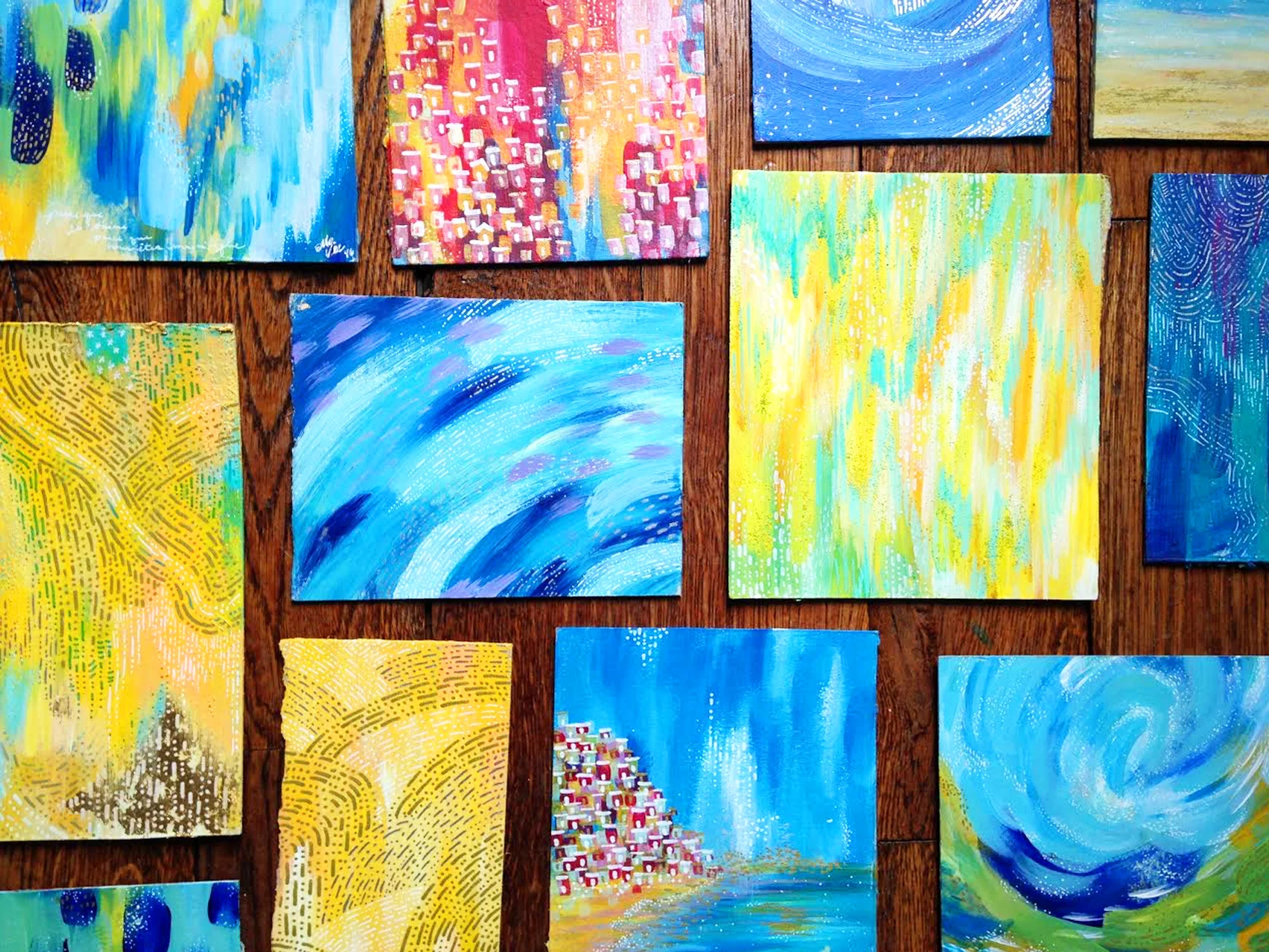 I visited Amsterdam in July and knew I wanted to do some painting during my visit. Not wanting to carry bulky canvases around, I quickly grabbed some of the extra stiff board pieces and took them along with me to paint on. Not only was I able to create some cute small paintings, but I was able to create a whole new series without having to spend extra money on supplies. Since, I've painting throughout my summer travels in Amsterdam, Italy and the south of france <3