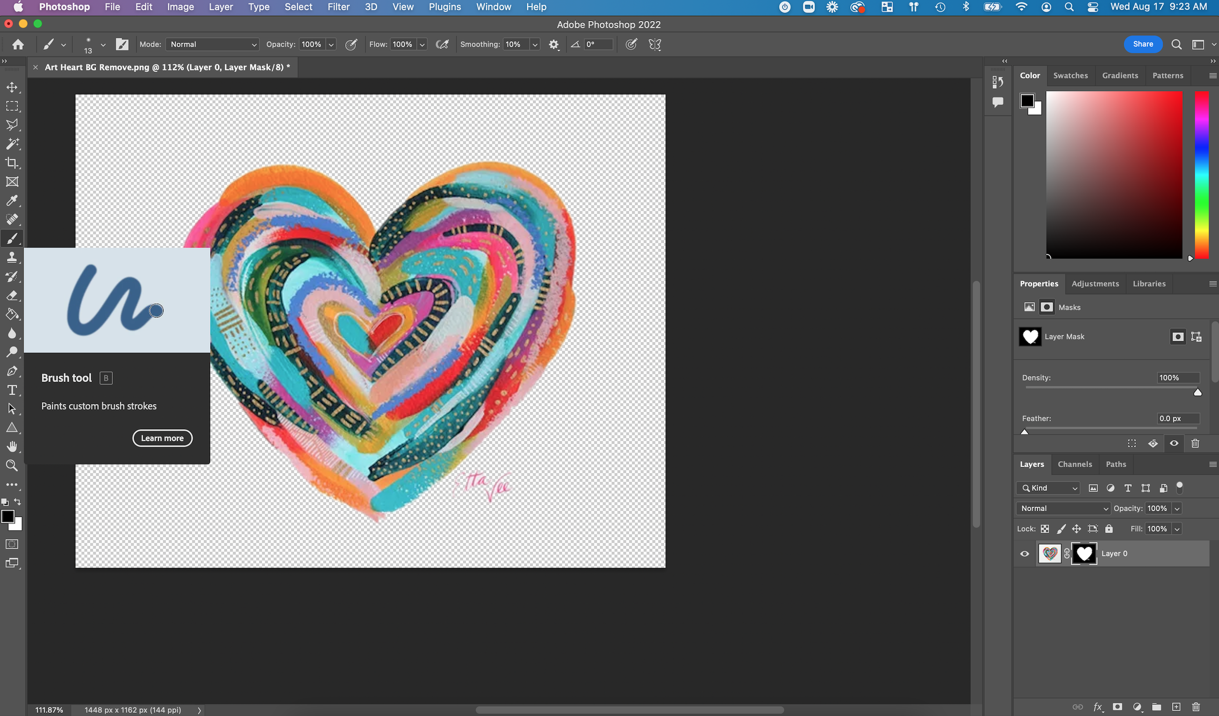 In this tutorial, I’ll show you a simple way to remove the paper background from your art in Photoshop. There are so many different ways to do this, but I want to keep it simple. In future tutorials, I’ll dive into more detail on this topic, but I want to keep this one simple so you can easily get started right away! This will work best with a piece of artwork with one subject on a plain background. I’m going to use my signature art heart in my example!