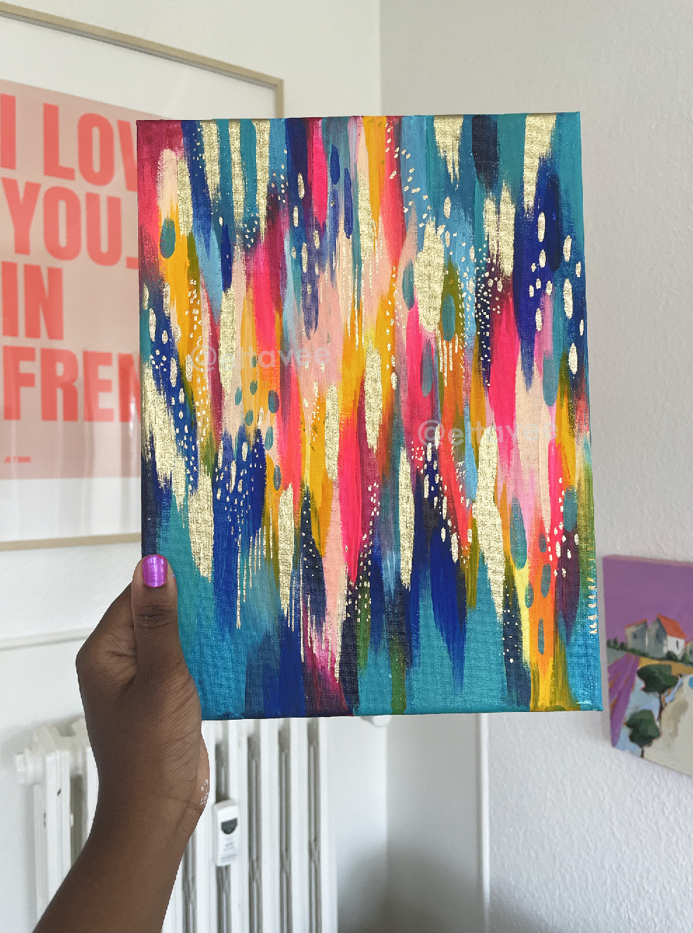 Want more acrylic painting inspiration? Join me in my painting class, Joyful Abstracts, for an in-depth art class where I walk through my entire abstract painting process from start to finish. You’ll learn how to mix colors, how to sketch out your composition, how to paint a balanced abstract, and how to varnish your painting so it will last a lifetime!