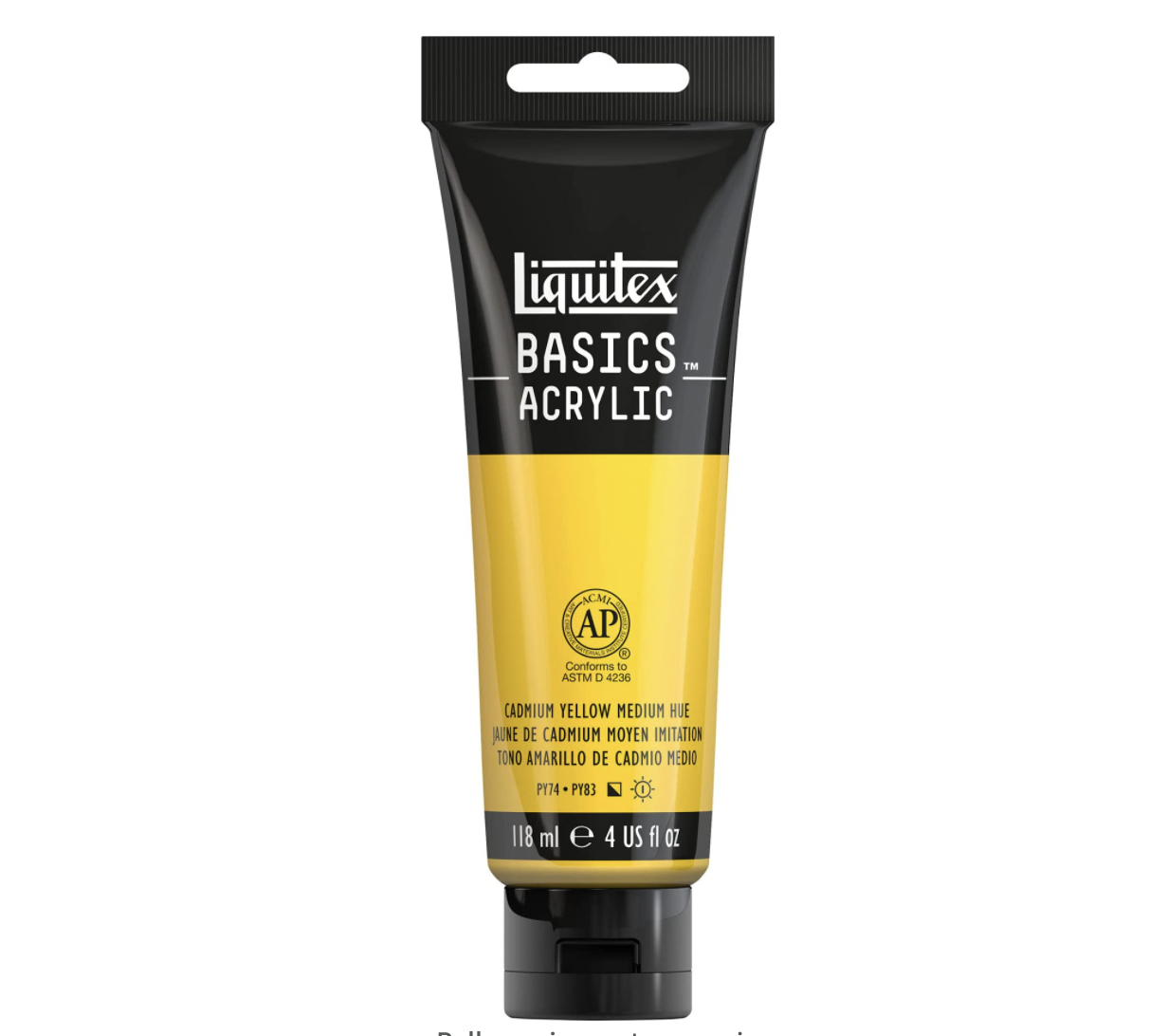 I’ll be using the brand Liquitex Basics to show that you can create bright and colorful artwork using inexpensive paints! You may use any brand of acrylics of your choosing for this paint session. Feel free to select any specific colors that you want in your piece.