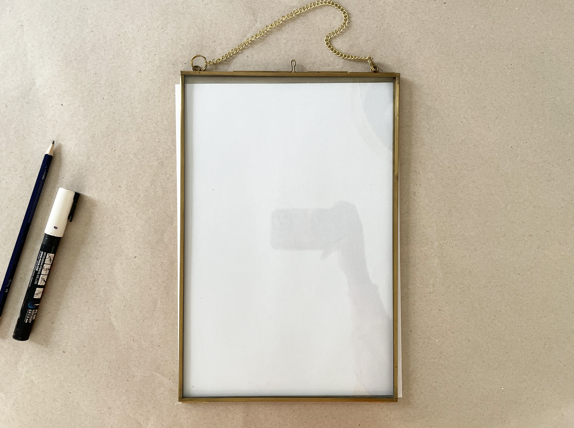 Check how your piece of paper fits with your frame. In my case, my paper and frame are just about the same size. I’m just wanting to make sure that when I sketch my tree on my paper, that it will fit within my frame.