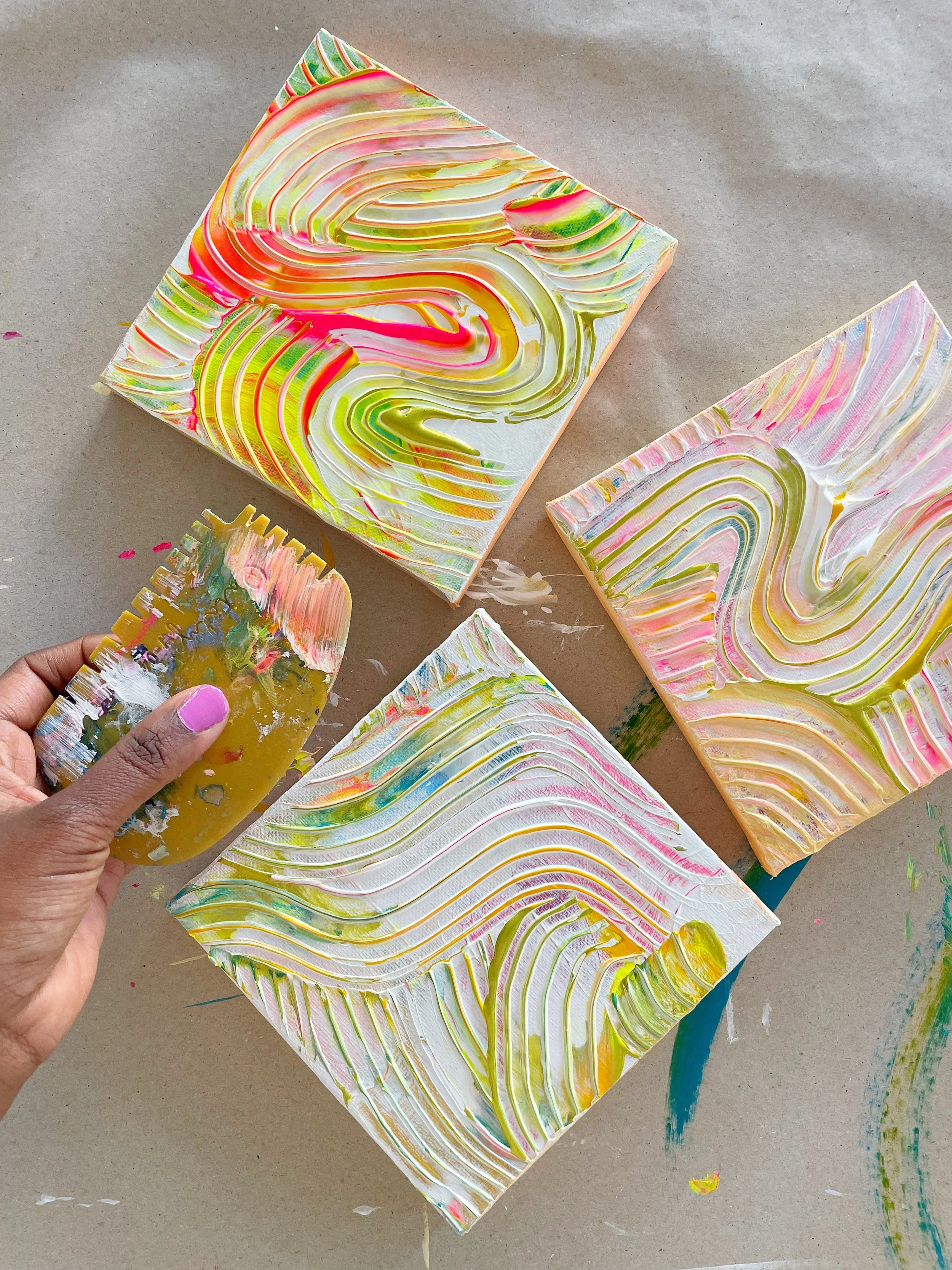 As parts of the world warm up for spring, I thought it would be fun to switch it up a bit with a painting class focused on creative play! We’re going to be creating textured art work inspired by ice cream.
