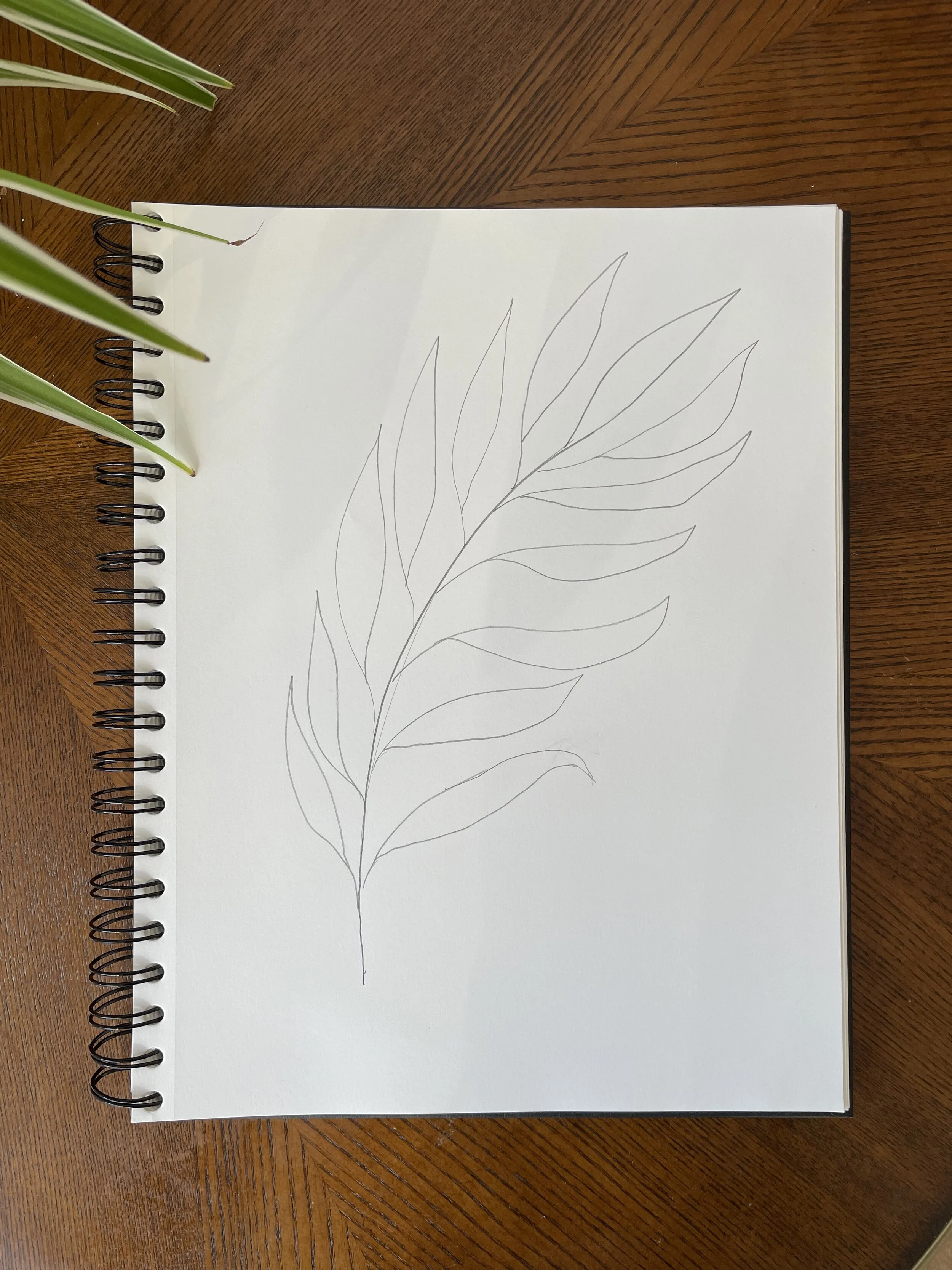Complete the final leaf and be sure to sketch the leaves to where they “wrap” around the leaves of the middle palm.