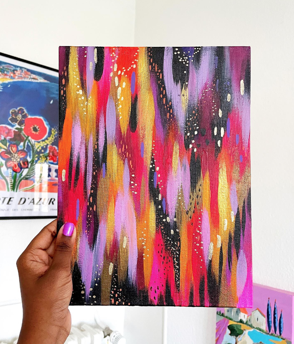 Join me for an online painting class where you'll celebrate Halloween and Spooky Season through abstract painting. You'll learn acrylic painting techniques like background washes, layering, color mixing, and much more! At the end of class you'll have a stunning abstract painting that you'll be proud to hang in your home!